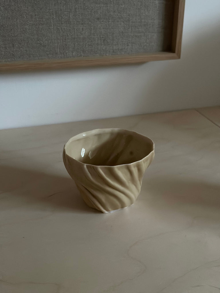 Koppen er håndlavet i Århus i det fineste hvide porcelænsler. Den tåler opvaskemaskine og passer perfekt i størrelsen ind i din kop-reol.