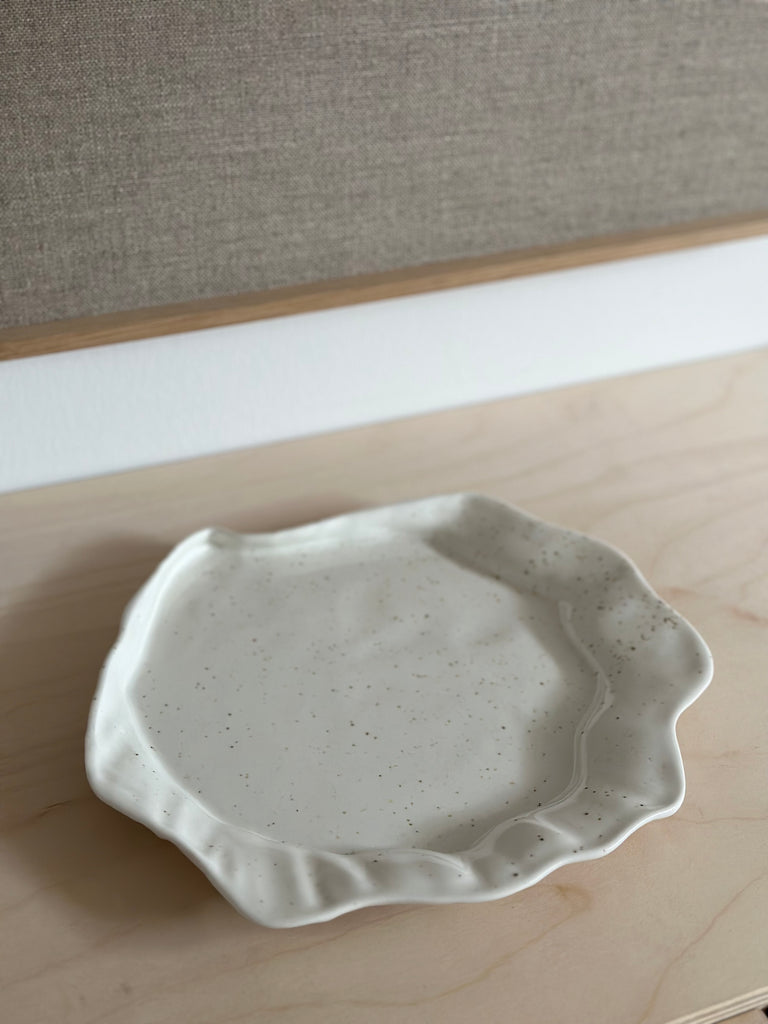 Musling Middagstallerken / Fad er håndlavet i Danmark. Design af Dorte Kristoffersen for Christina Iversen Studio