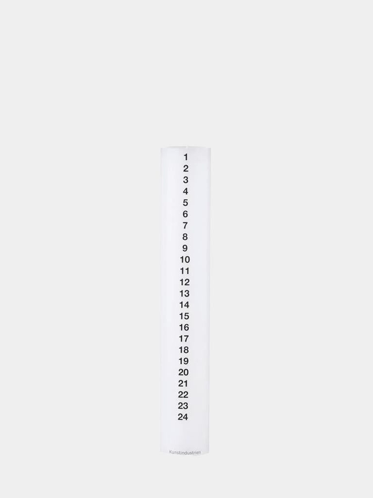 Fint stort kalenderlys fra Kunstindustrien med sorte tal, der tæller alle dage fra 1 - 24.