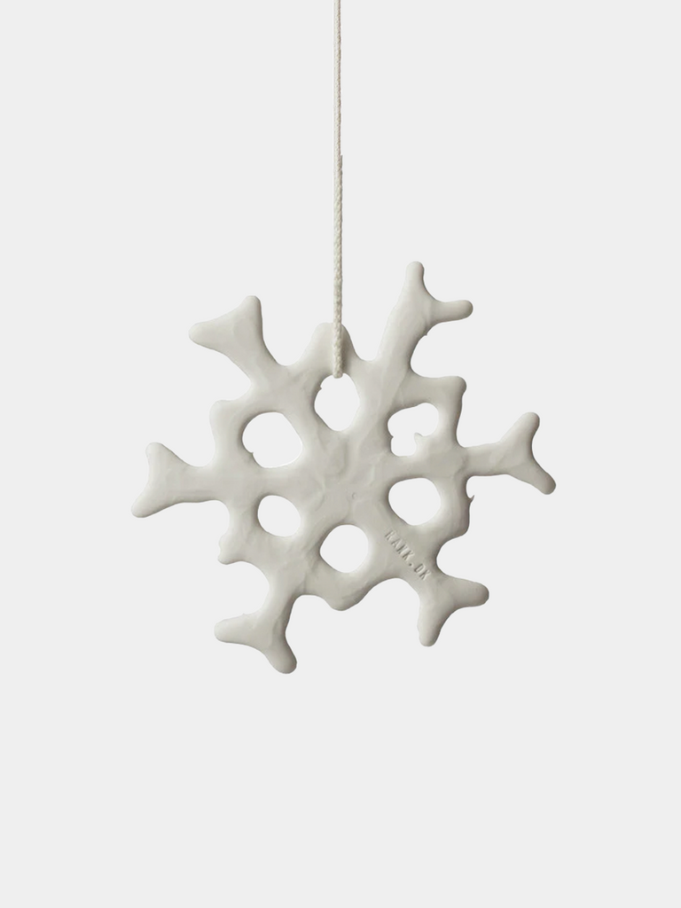 Pakken indeholder 5 hvide iskrystaller i porcelæn fra Lars Rank inklusiv hvid snor til hver.