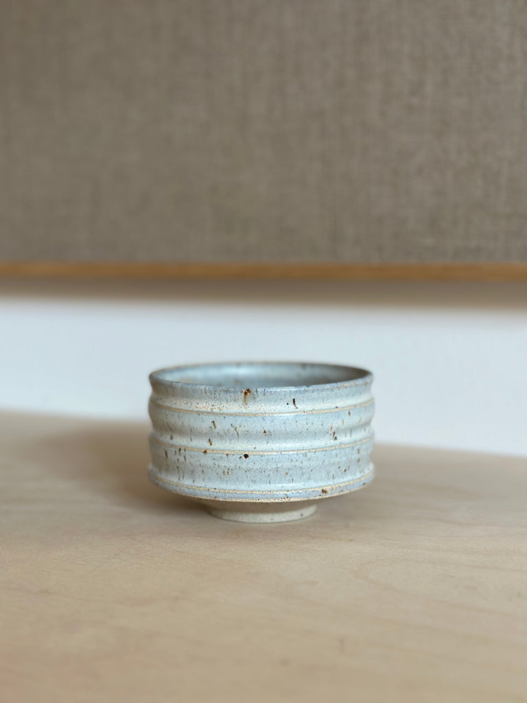 Hver kop er drejet i hånden og brændt med en naturlig glasur, der giver små variationer i farve og struktur – hvilket gør hver enkelt kop unik. De bløde riller i formen giver både visuel ro og et behageligt greb, mens den matte overflade understreger det håndlavede udtryk.