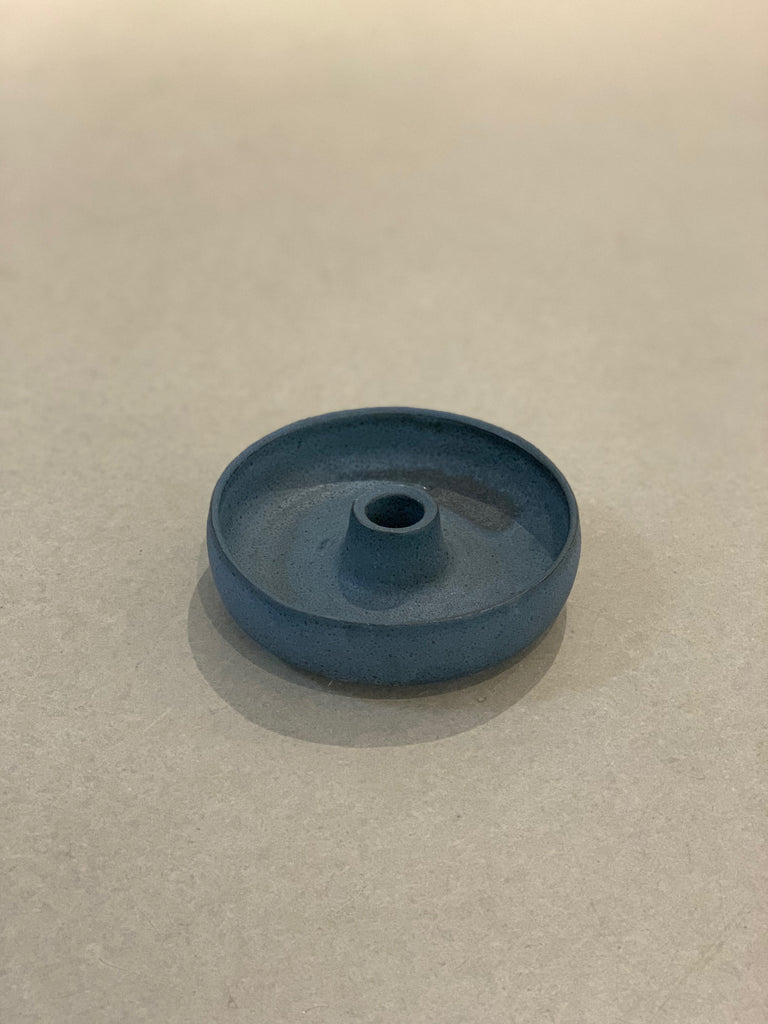 Lysestage i den dybe og matte Midnight-Blue glasur. Håndlavet i rødt stentøjsleer.