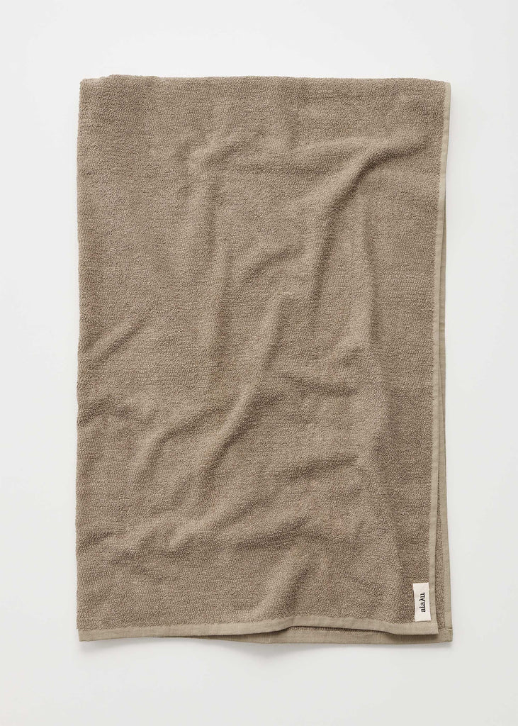 Et eksfolierende og absorberende frottéhåndklæde fremstillet af naturlige hør- og bomuldsfibre. Designet i en klassisk form med en ufarvet canvasstrop og et broderet logo.