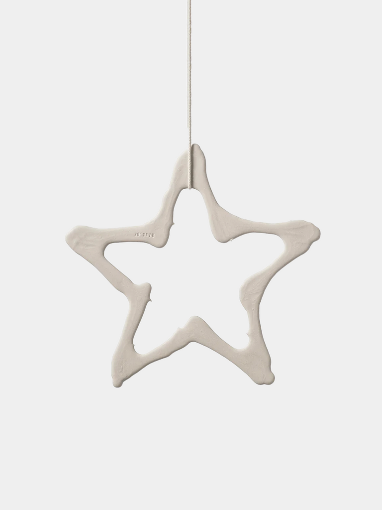 Pakken indeholder 5 hvide stjerner i porcelæn fra Lars Rank inklusiv hvid snor til hver.