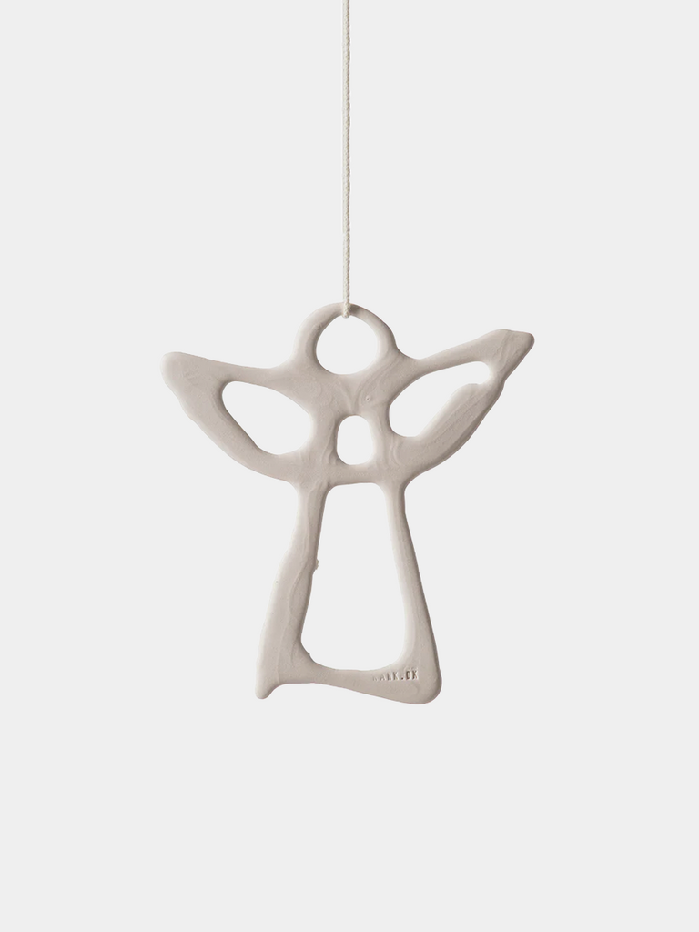 Pakken indeholder 5 hvide engle i porcelæn fra Lars Rank inklusiv hvid snor til hver.