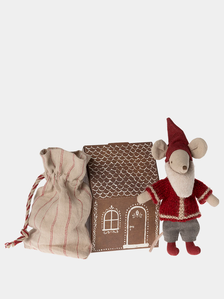 Storebror mus klædt i klassisk julemandstøj. Han bor i et lille hus, og har en sæk til alle de gaver, han skal levere juleaften. Han passer perfekt ind i det store Maileg honningkagehus, da han kan glide gennem skorstenen.