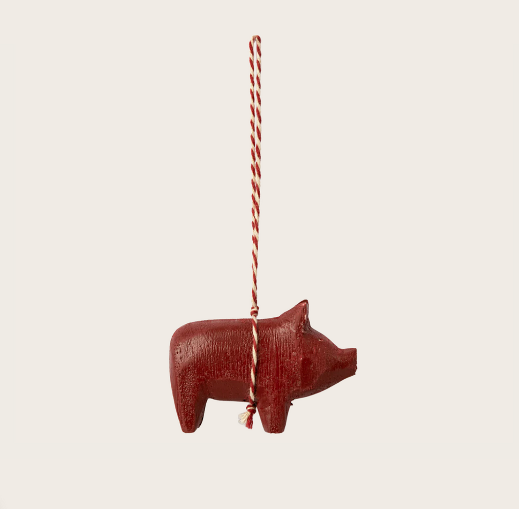 Et klassisk ophæng fra Maileg, der kan pynte overalt i dit hjem. Den lille trægris er håndskåret og efterfølgende malet. Snoren i matchende farve giver et eksklusivt look.