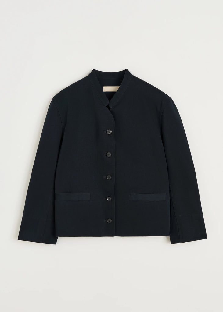 En jakke fremstillet af kraftig, tætvævet økologisk bomuldstwill med fine referencer til klassisk uniformsdesign. Designet i en afslappet pasform med paspolerede lommer, knaplukning på manchetterne, indsnit på ryggen og afsluttet med delikate, japansk-inspirerede kravedetaljer.