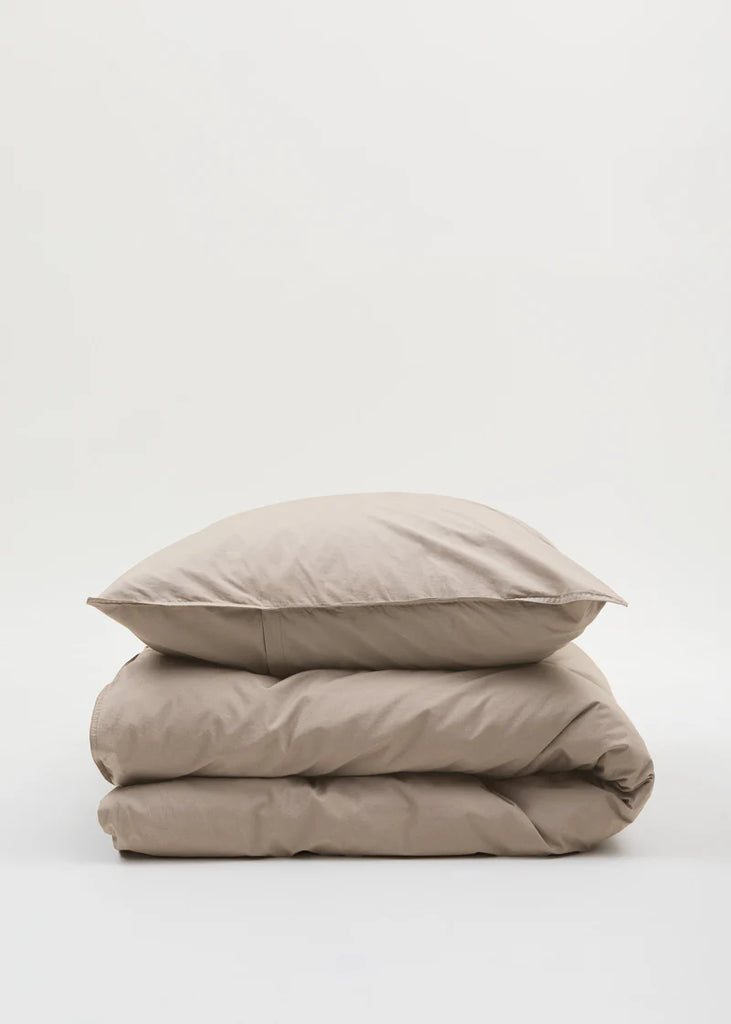 Sengetøj i blød og holdbar bomuldspoplin. Designet i et klassisk udtryk med et diskret printet aiayu-logo. Sengesættet består af ét hovedpudebetræk med kuvertlukning og én dyne med lynlåslukning. Sengetøjet leveres i en praktisk bomuldspose.