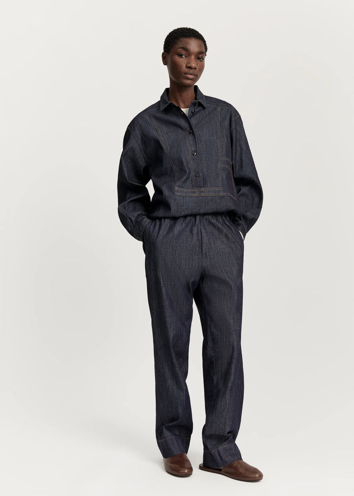 Et par komfortable bukser fremstillet i økologisk bomuld. Med inspiration fra herrebukser er denne model designet i en afslappet silhuet med bred elastikkant i taljen, sidelommer og lige ben med ekstra længde for et raffineret fald. En klassisk og komfortabel buks, der giver et elegant udtryk.