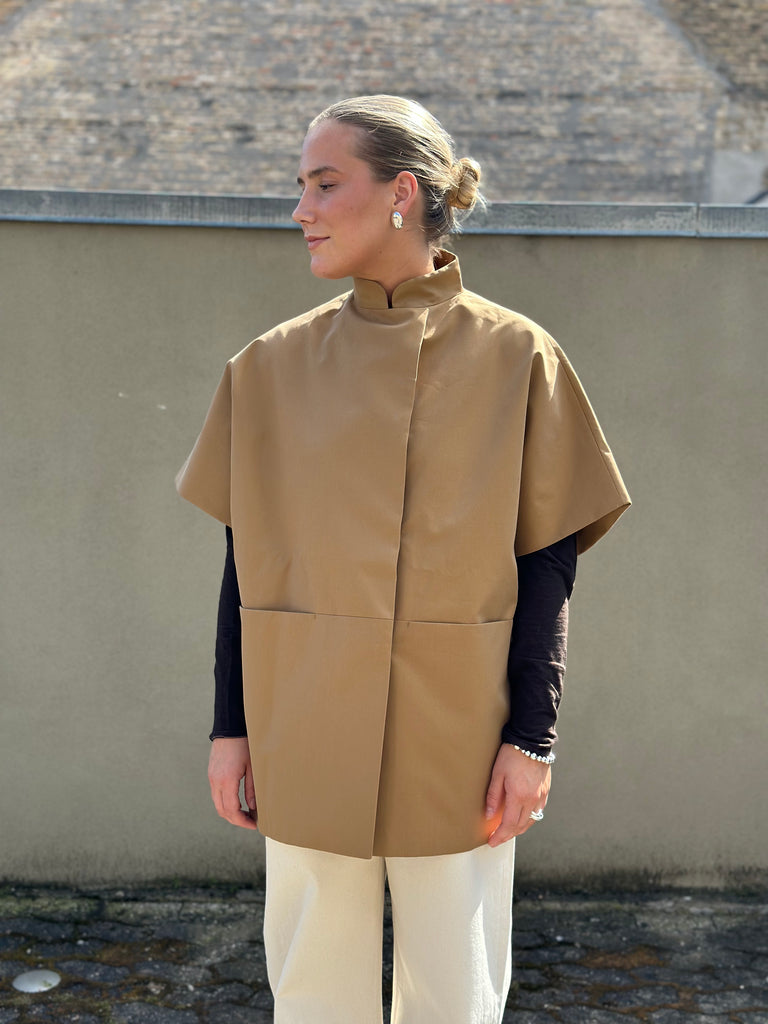 Lommer foran og elegant slids bagpå. Mok-frakken er designet til en oversized pasform, hvilket gør den perfekt til lag-på-lag og fuldender et elegant og behageligt look.