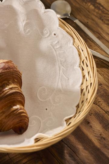 Brødserviet - Oval - Hvid m. broderi