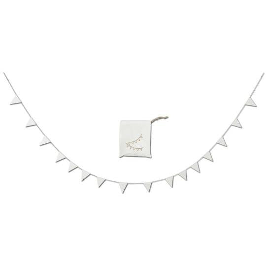 Fin flagranke med 15 små flag i 10x10,5 cm. Ranken måler i alt 4 meter, og flagene kan placeres hvor på snoren, man ønsker. Ranken hænges op i to løkker i hver ende.