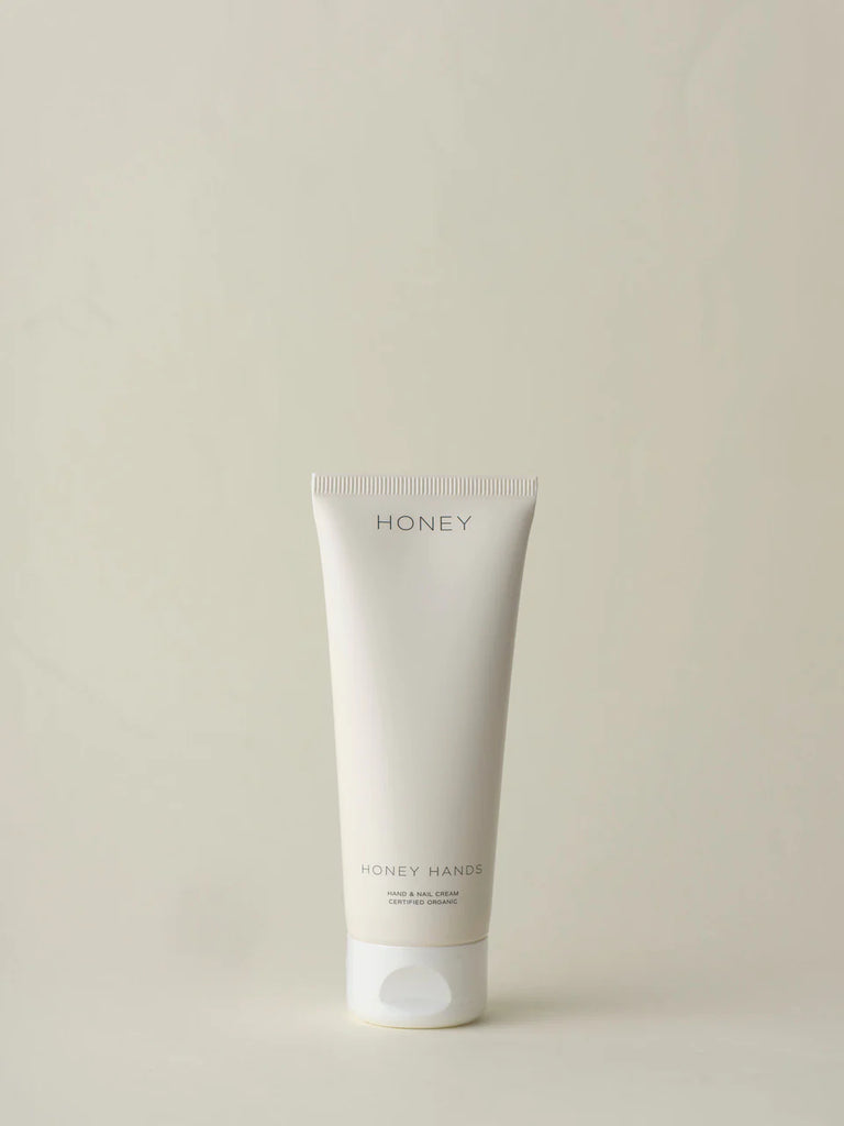 HONEY Hands er formuleret med økologisk avocadoolie, der forbedrer hudens struktur og styrker både hud og negle. Økologisk sheasmør beskytter og holder på fugten, økologisk aloe vera beroliger og fugter, mens squalane fra oliven er med til at genskabe hudens elasticitet. Den fungerer også som neglepleje, perfekt til at massere ind i neglebåndene, så hænder og negle får ekstra glans og pleje.