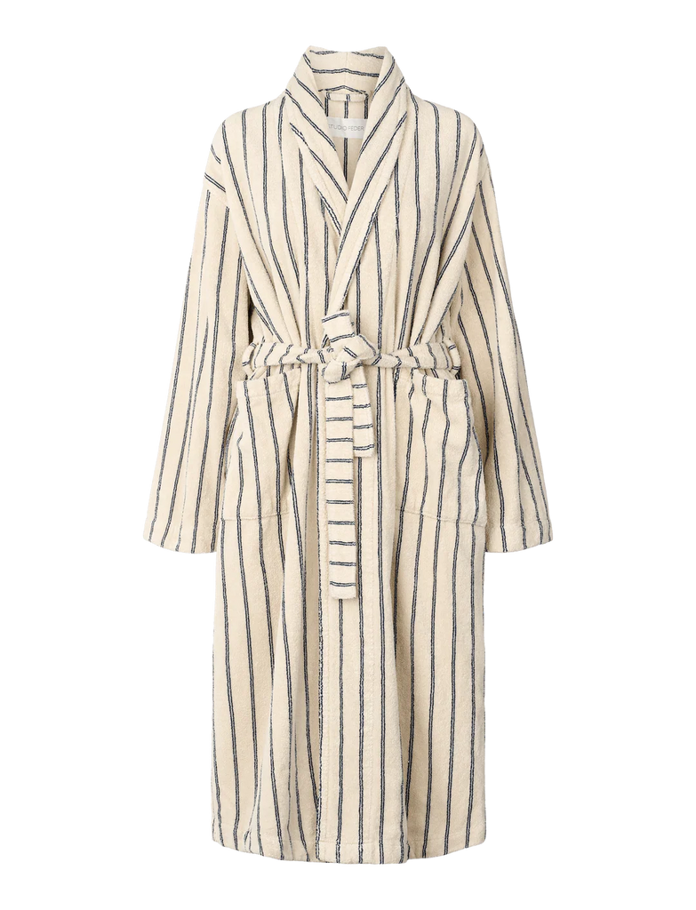 En rummelig badekåbe med store gode dybe lommer og en behagelig blød krave du kan svøbe dig ind i når du skal lune dig efter et bad eller havdyb eller bare skal slappe af på sofaen.