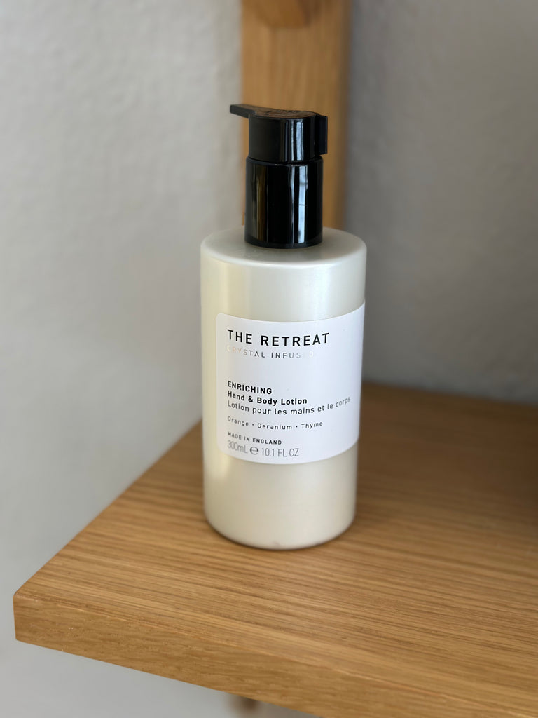 Hånd og body wash med rose og klar quartz-krystal blanding.